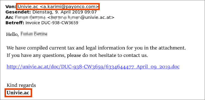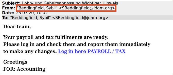 In addition to stealing (access) data, attackers can also aim to steal money. Such e-mails are often particularly difficult to detect as they are tailored to their addressees.
