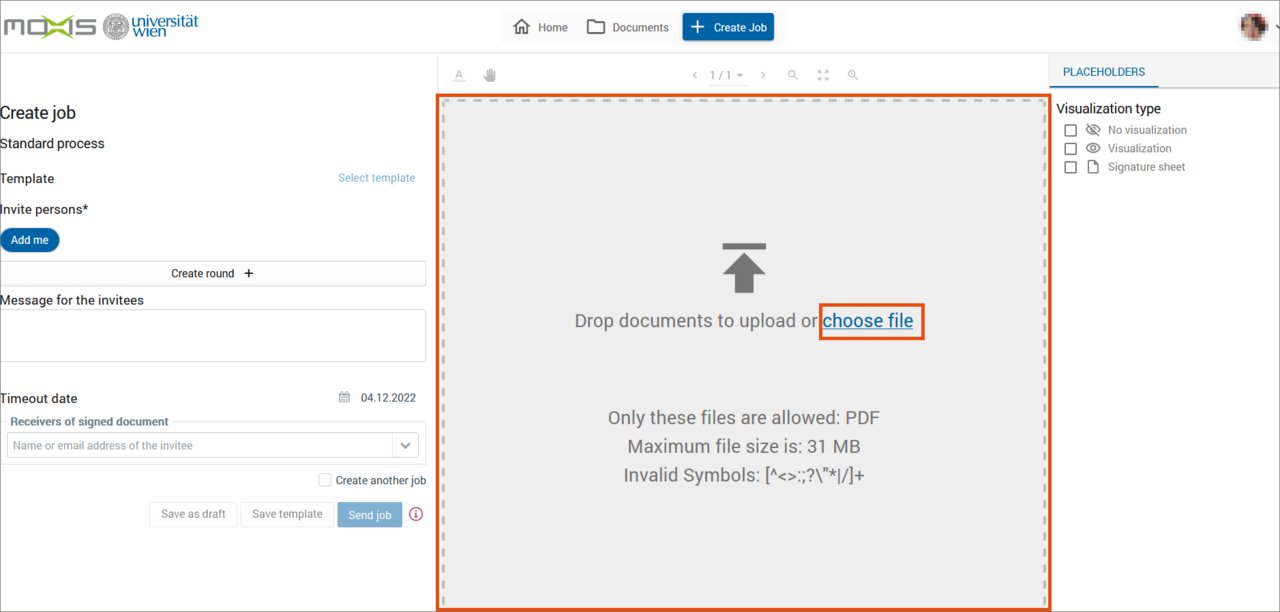 - In the field Message for the invitees, you can optionally enter information that you would like to share with all signatories.