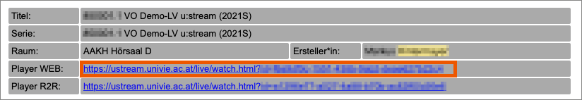 - As soon as a course has been registered for the u:stream service, you receive a link to a livestreaming page in the registration confirmation via e-mail. After each start of a web livestream, your lecture can be viewed in real time on this page.