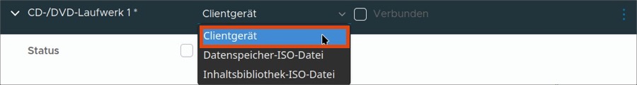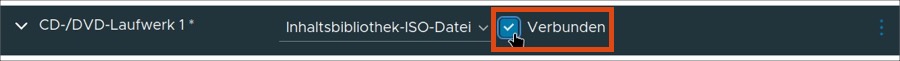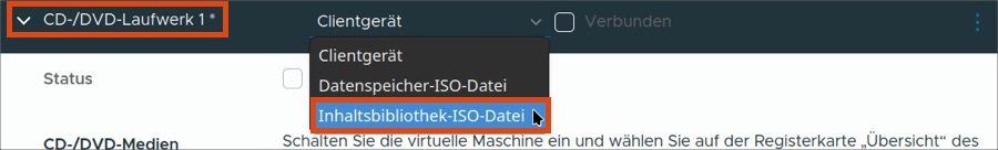 Wählen Sie unter CD-/DVD-Laufwerk 1 – Inhaltsbibliothek-ISO-Datei.
