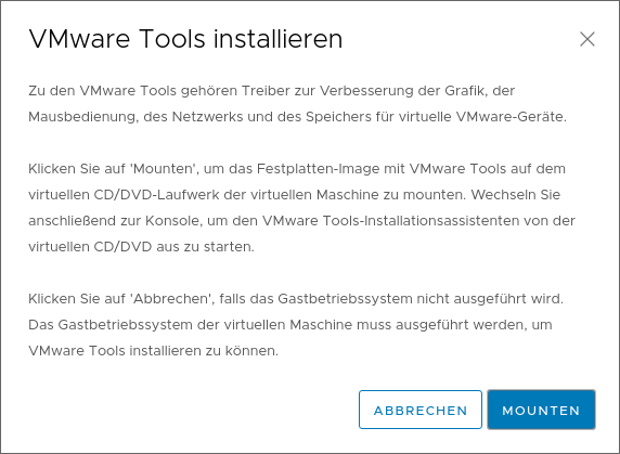 - Kein Hinweis: VMware Tools sind in der aktuellen Version installiert. Sie müssen nichts tun.