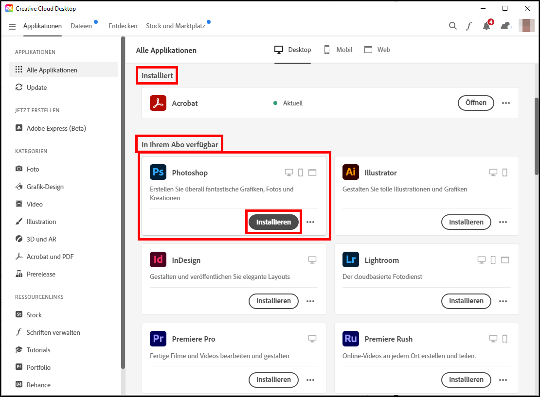 Adobe-Apps installieren