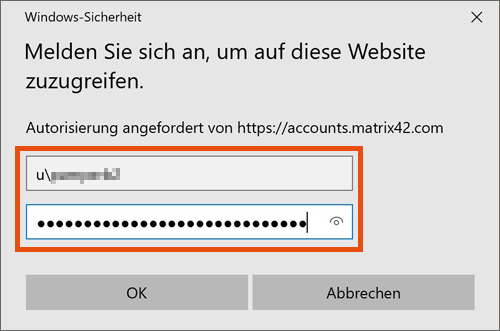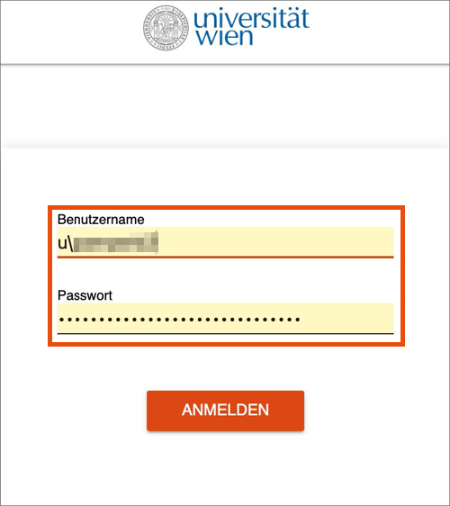 - Melden Sie sich mit u\UserID (beachten Sie das vorangestellte u\) und zugehörigem Passwort an.