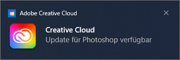 Jede Applikation, die Sie über Adobe Creative Cloud auf Ihrem Gerät installieren, muss von Ihnen selbst aktualisiert werden.