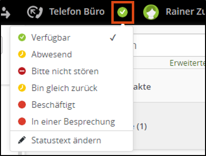 Klicken Sie auf die Statusanzeige und wählen Sie den gewünschten Status.