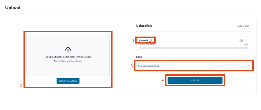 Diese Anleitung hilft Mitarbeiter*innen, Video- oder Audiodateien über die u:stream-Administration in u:stream hochzuladen. So können sie als On-Demand-Stream verfügbar gemacht werden.